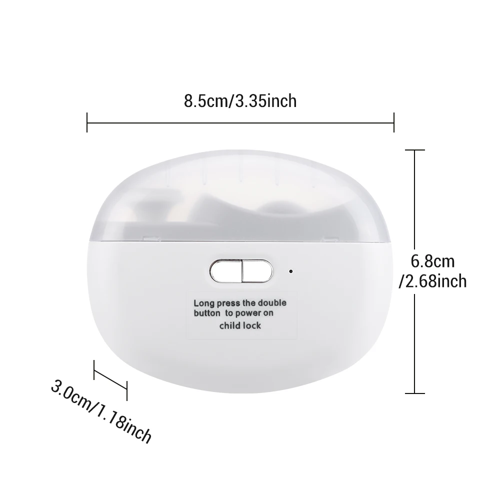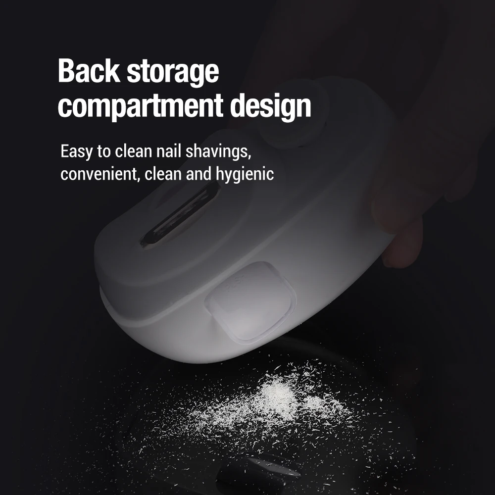 3. Using centrifugal force technology, this automatic nail polisher collects nail debris as you trim, preventing nail splatter. Its soft LED light ensures clear visibility, even for nighttime use.