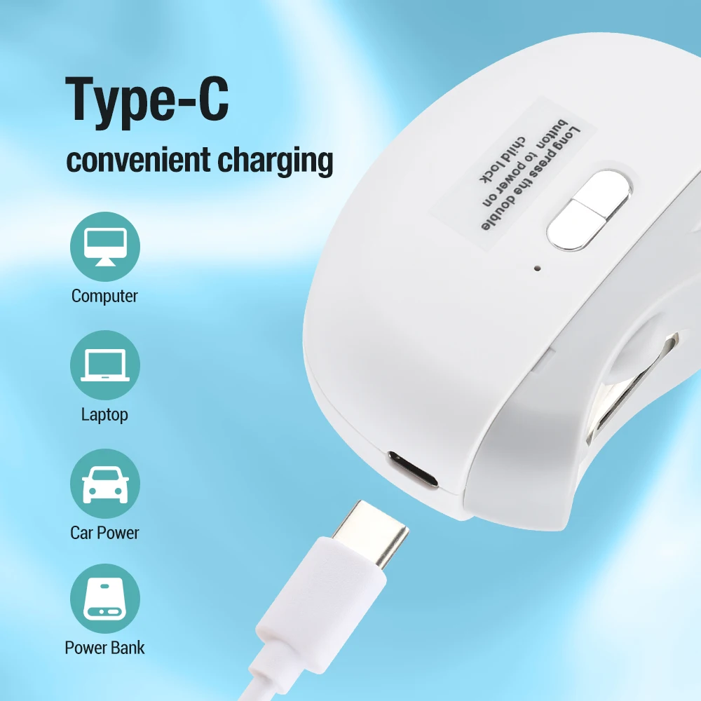 4.The compact electric nail clipper is easy to store and carry, allowing you to trim nails anytime, anywhere, whether on the go, traveling or at home.