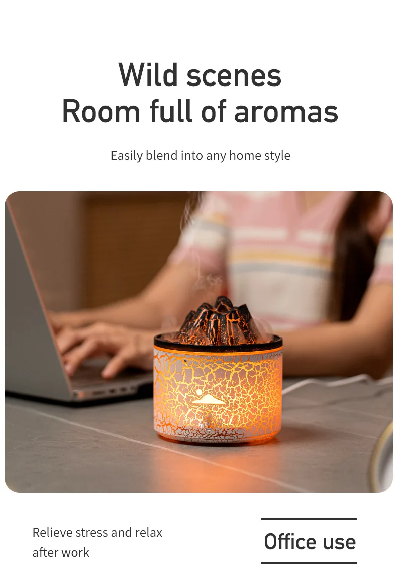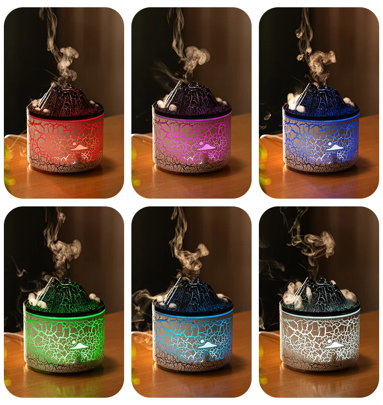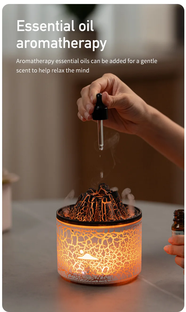 Flame Volcano Humidifier Aroma Diffuser Ultrasonic Mist Maker Fogger LED Essential Oil Fire Jellyfish Diffuser Fragrance Home